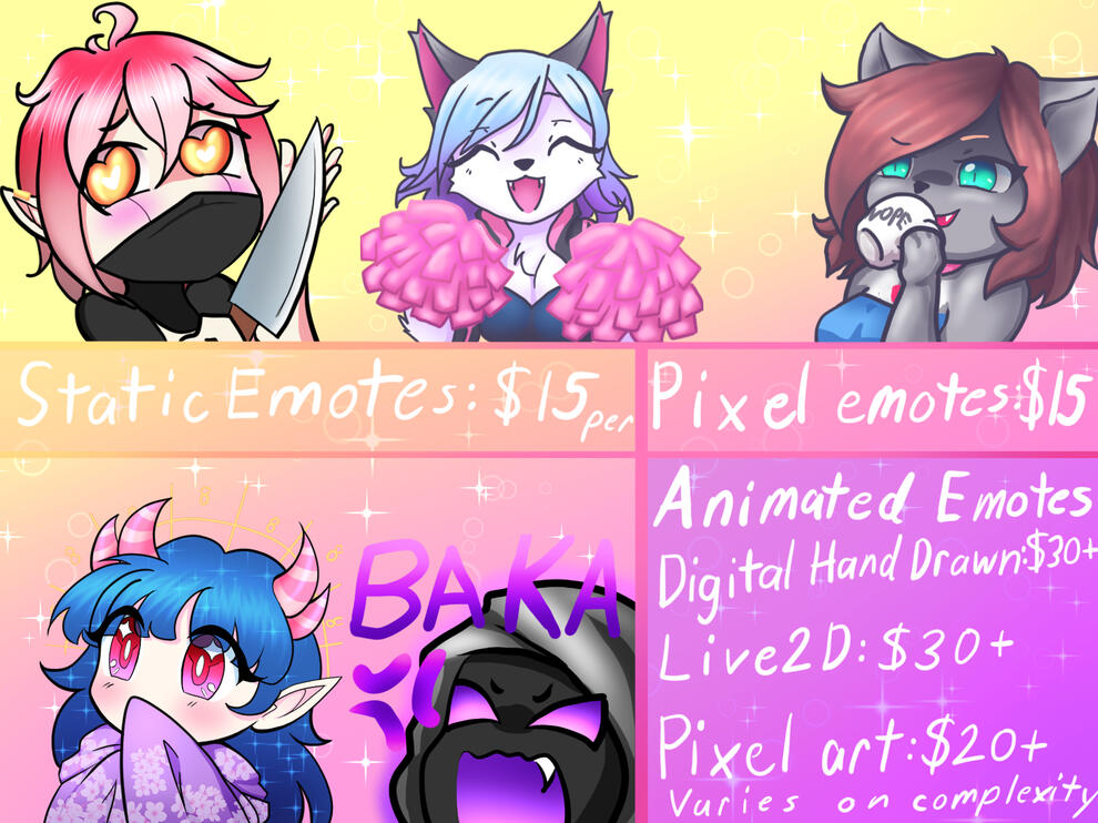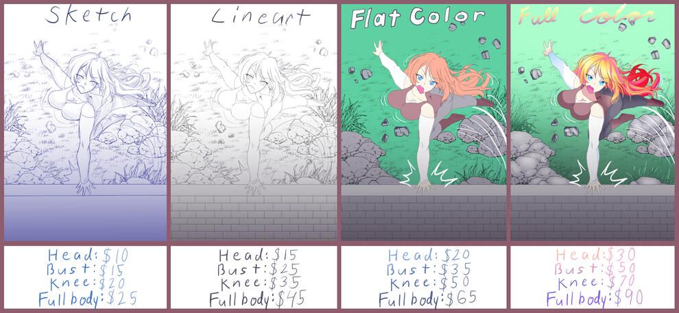 Extra expressions: $5 each (extra depending on complexity of the expression.)